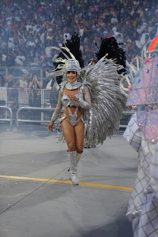 Após meses de preparação e ensaios intensos, a influenciadora cumpriu sua promessa de levar alegria e entrega total à avenida, consolidando sua performance como um dos destaques da noite.